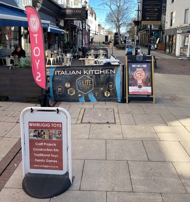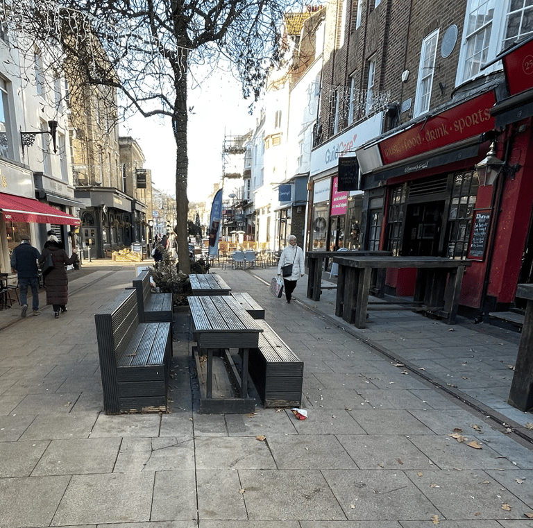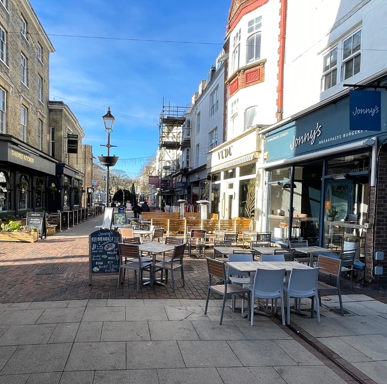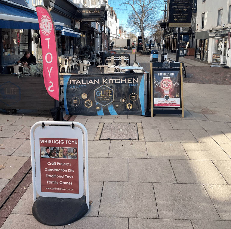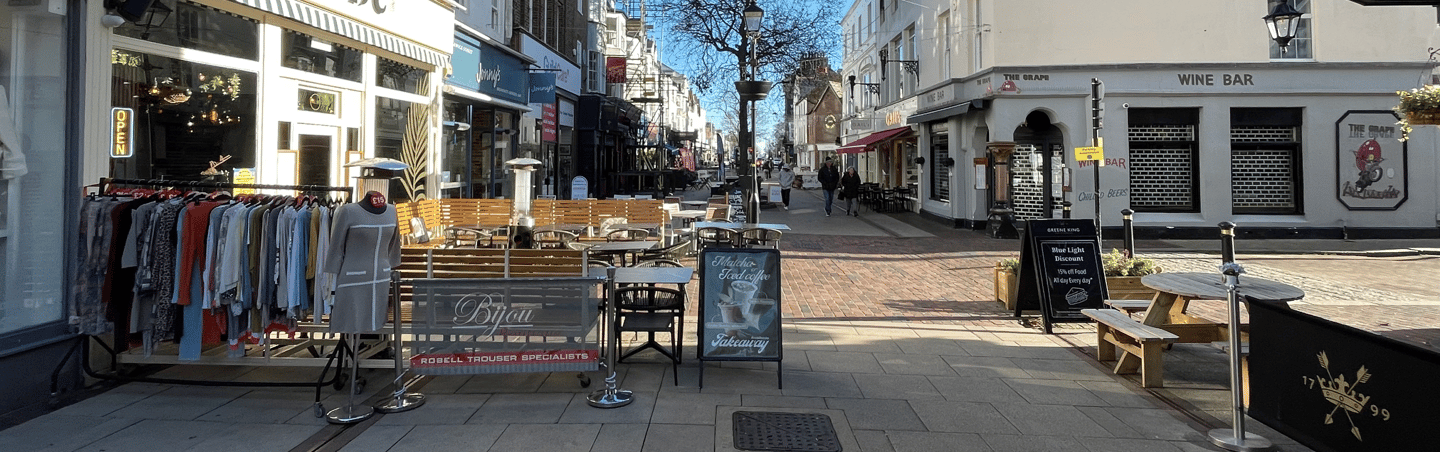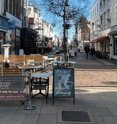 Let's rename Warwick Street to a more luxury-sounding ‘Warwick Lanes’. Remove pavement obstructions. Proliferation of A-boards creates a literal obstacle course on our primary luxury shopping destination. Encroachment of seating is never filled. Gail’s and Thieves Kitchen comply with the law, so let's enforce the 2 metre law on all businesses. This furniture blights the town’s primary destination venue.