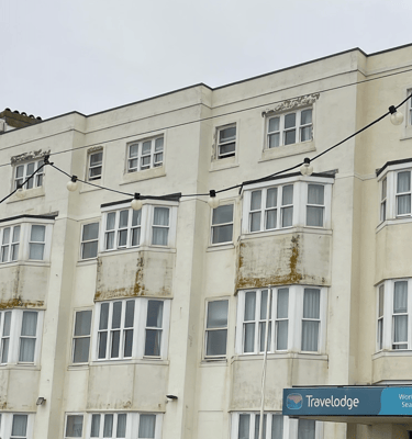 We respectfully request you paint the rusting and derelict facade of your Travelodge Worthing Seafront hotel at 86-95 Marine Parade, Worthing, BN11 3QD. As the stand-out blot on an otherwise pristine row of Regency houses, it's making our beautiful seafront look bad. We’re still waiting for Travelodge UK to paint their rust-stained facade. For their health we advise all visitors to book elsewhere. Thank you for your attention to this matter.