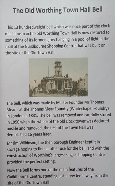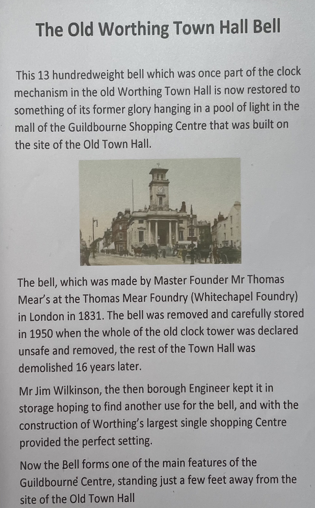Old Worthing Town Hall Bell is a forgotten asset. Let’s bring it outside again at to Guildbourne Centre entrance. Restore the clapper so kids can ring it ‘ding-ding’ I’m going to the Guildbourne! Let’s celebrate our beautiful history!
